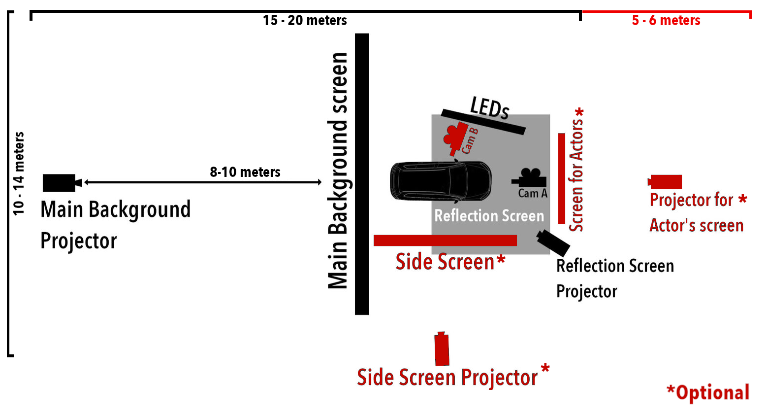 Additional Lighting (the condenced setup we have is designed for optimal speed vs efficiency, however for certain shots / situations more Active Lighting may required) (eg. for big vehicles such as a bus)