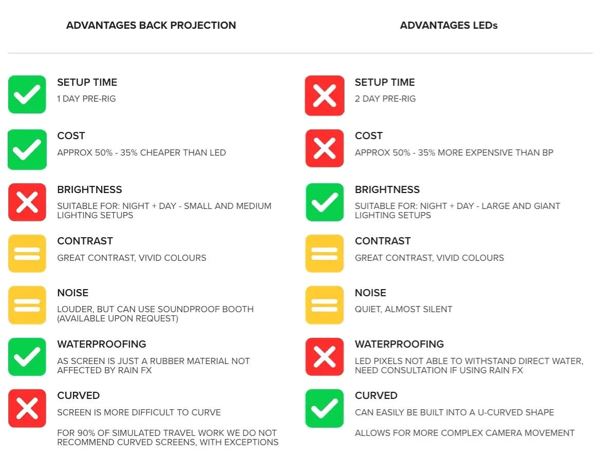 On the day we run the projection via our onset playback system, which allows for image reposition, cutting, and grading to match camera - meaning we can immediately make any change you may need on the fly, to either the visuals or the footage, in order to stay flexible and adjust to produce the best visuals possible.