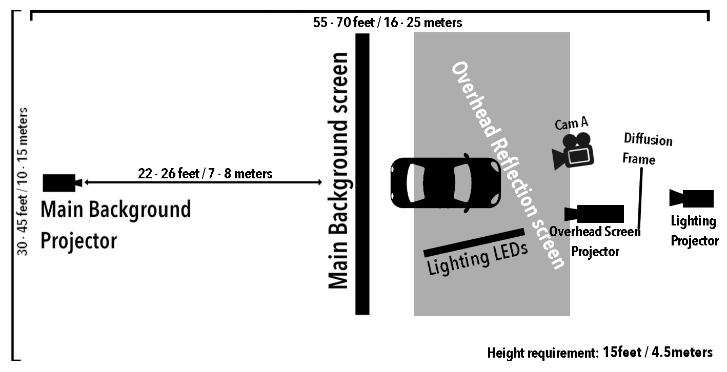 The devil is in the details - that is why we combine the back projection image together with separate projections designed to appear in reflective surfaces (eg. windscreen) and our innovative reactive lighting system - synchronised with the background image, aimed at completely immersing the scene into reality. The level of control and realism this gives us is all intended to give you the best visuals and flexibility.