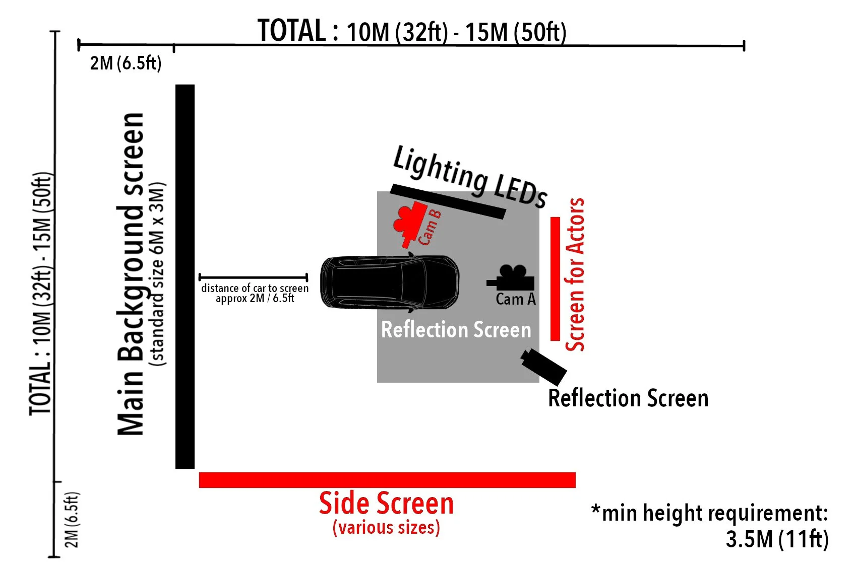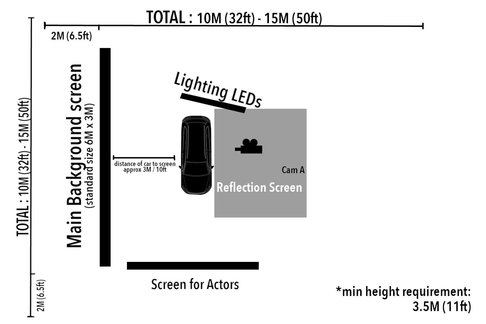 Additional Lighting (the condenced setup we have is designed for optimal speed vs efficiency, however for certain shots / situations more Active Lighting may required) (eg. for big vehicles such as a bus)
