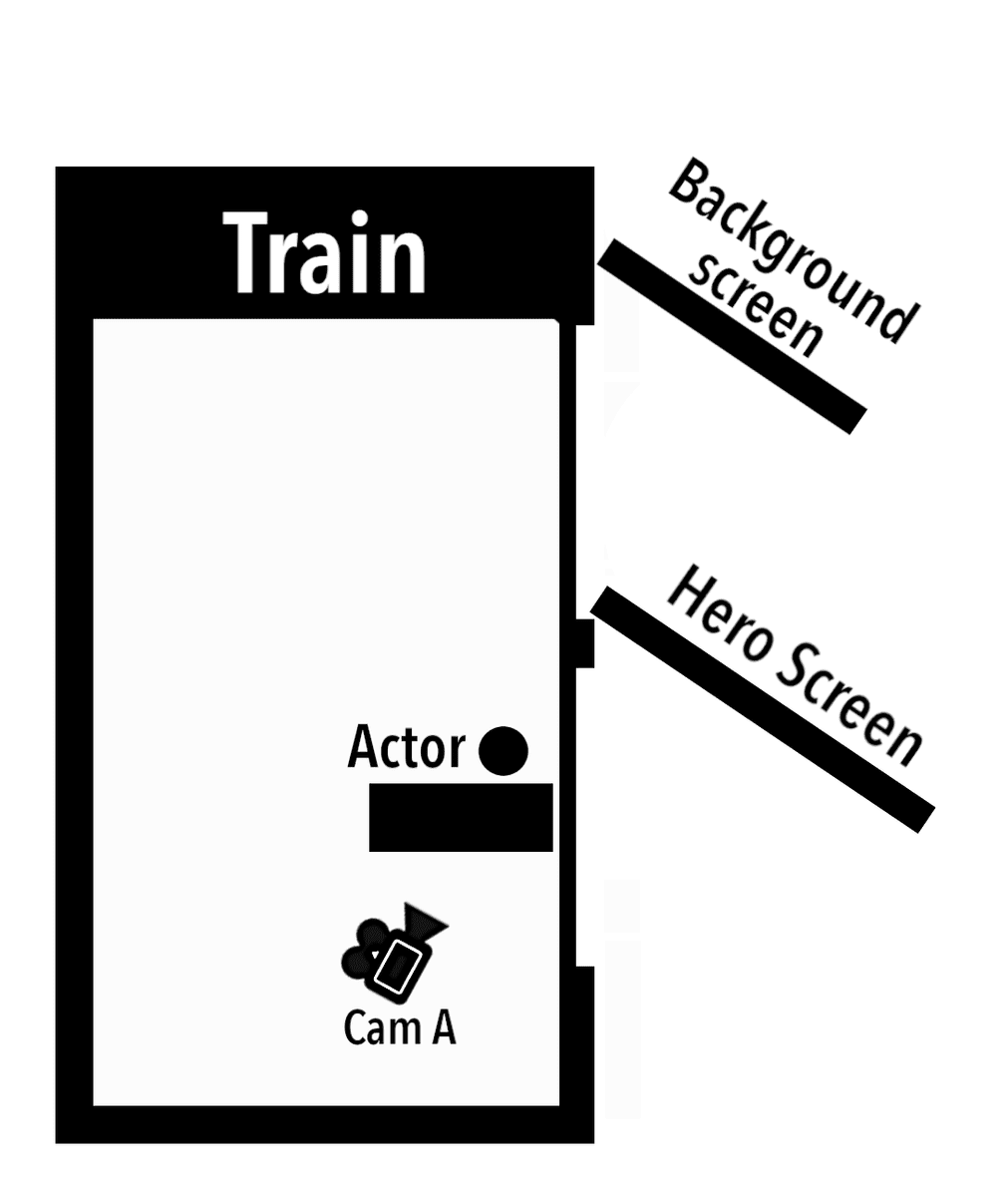 The LED screens are then elevated to match the height of the train carriage film set, and rotated to match the angle of the camera, in order to remain perpendicular to the camera.